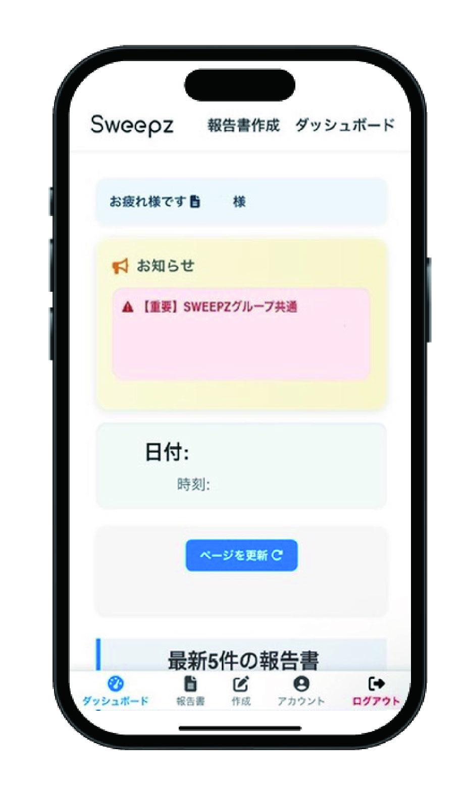 さらに、ダッシュボード以外の画面では、清掃報告書の作成や清掃項目・物件情報の管理など、多彩な機能を搭載。